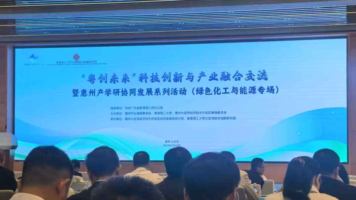 2025年8月29日,由惠州市臺港澳事務局、香港理工大學、惠州大亞灣經濟技術開發區管理委員會聯合主辦的 “粵創未來”科技創新與產業融合交流暨惠州產學研協同發展系列活動(綠色化工與能源專場)在惠州大亞灣華潤學習與創新中心隆重舉行!